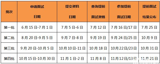 每位考生只能申請(qǐng)一個(gè)批次的提前面試,不可重復(fù)申請(qǐng)。