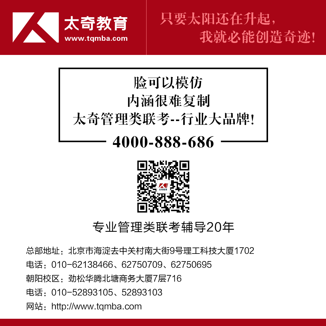 更多精準(zhǔn)管理類聯(lián)考資訊關(guān)注“太奇管理類聯(lián)考”微信公眾號(hào)!