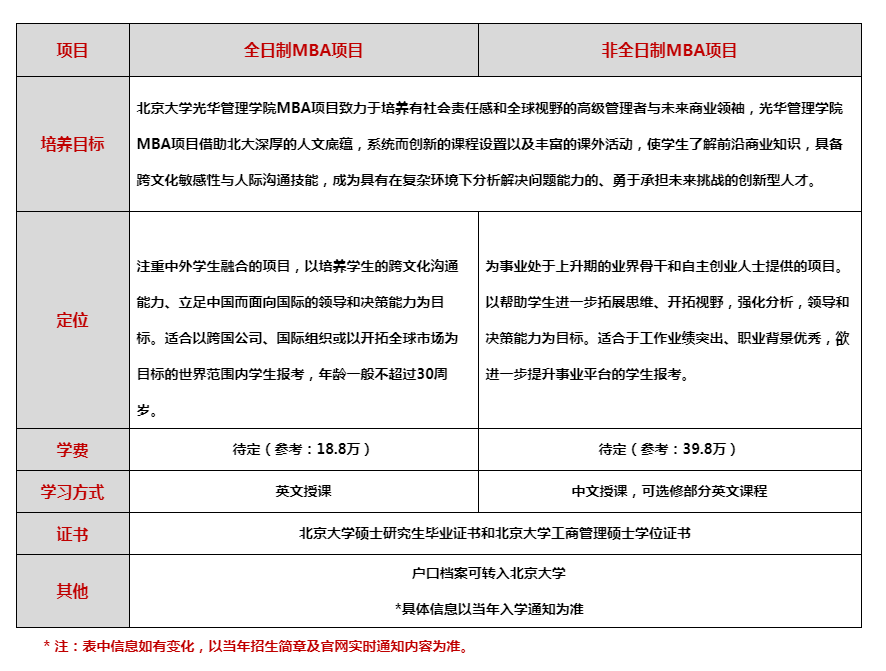 北京大學(xué)光華管理學(xué)院MBA2020年招生包含全日制MBA和非全日制MBA項目。