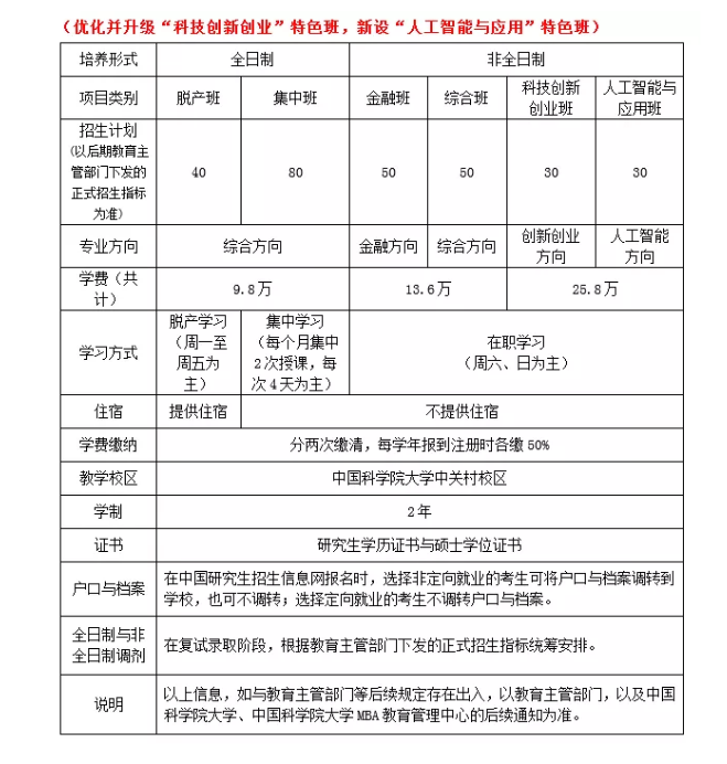 中國(guó)科學(xué)院大學(xué)2020年MBA計(jì)劃招生類別