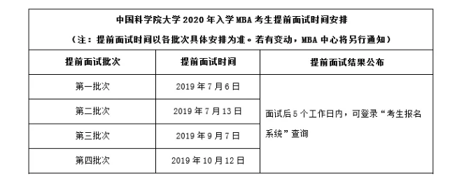 2、2019年6月至10月,中國(guó)科學(xué)院大學(xué)MBA教育管理中心將組織專家組對(duì)網(wǎng)上提交提前面試申請(qǐng)的考生進(jìn)行綜合評(píng)估審核 ,在審核截止之前考生可繼續(xù)提交提前面試申請(qǐng)。