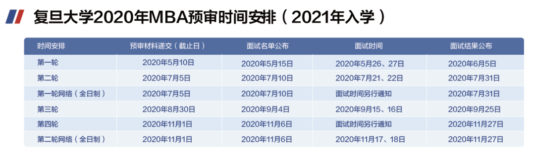 2021年入學(xué)復(fù)旦MBA分為四個(gè)預(yù)審輪次。