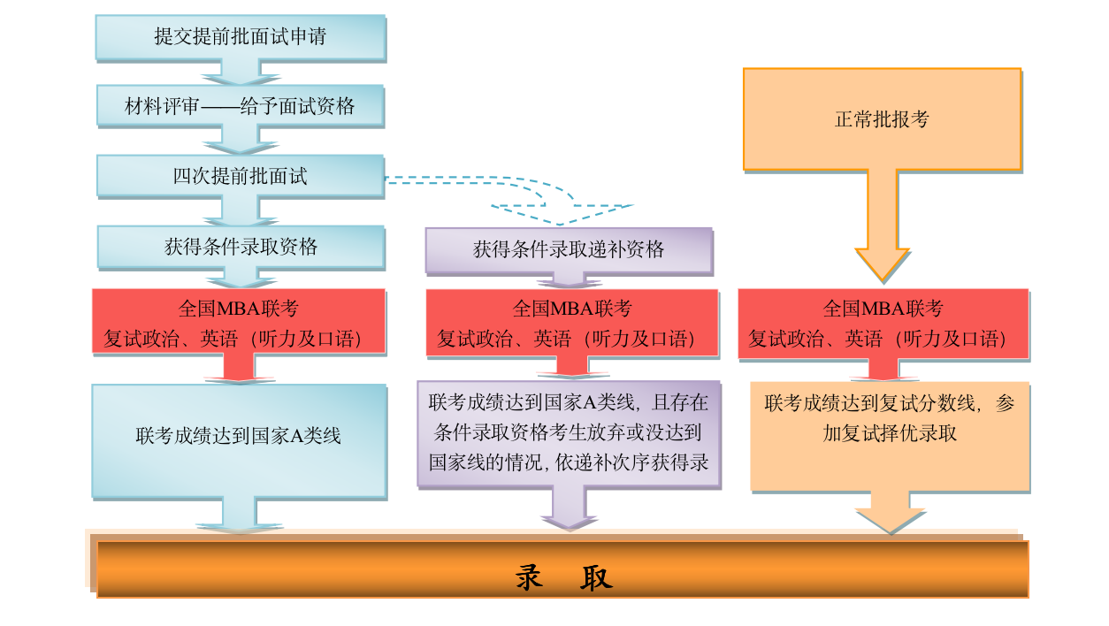 登錄中國(guó)人民大學(xué)商學(xué)院MBA項(xiàng)目中心網(wǎng)站“考生服務(wù)系統(tǒng)”,按照規(guī)定時(shí)間提交網(wǎng)上申請(qǐng)材料,學(xué)院將組織專家評(píng)審申請(qǐng)材料,擇優(yōu)給予提前面試資格并組織面試。面試后獲得條件錄取資格和條件錄取遞補(bǔ)資格的考生需參加2020年12月底舉行的全國(guó)聯(lián)考。