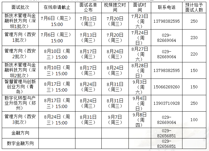 金融方向及數(shù)字金融方向面試時間另行通知或者詳見經(jīng)金學院網(wǎng)站通知(http://sef.xjtu.edu.cn/index.htm)。