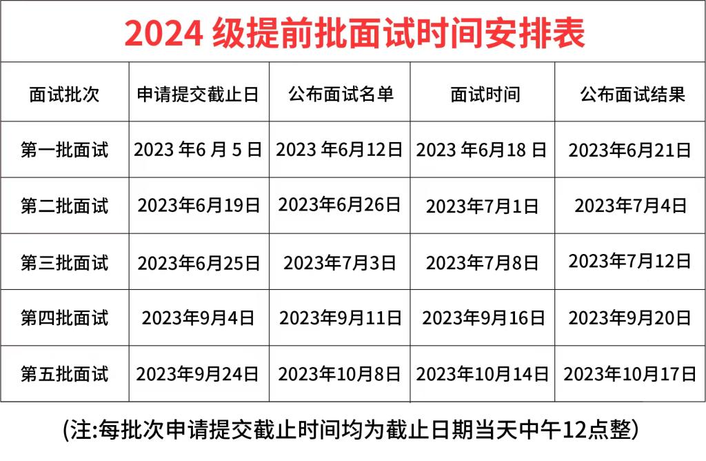 4. 面試批次時(shí)間安排(如遇面試時(shí)間與學(xué)?;蛏霞?jí)部門安排發(fā)生沖突而需要更改,則以后續(xù)通知為準(zhǔn))