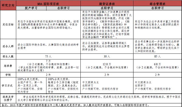 3、國際項目方向——MBA國際班定位于為面向世界進行拓展的中國商務(wù)精英。該項目100%核心課程邀請國外知名大學(xué)外籍教授、專家全英文授課,注重培養(yǎng)學(xué)生國際化的領(lǐng)導(dǎo)能力。適合以國際市場為目標,從事國際化商務(wù)活動的考生報考。該項目與數(shù)所以美國為主的世界知名高校建立了合作交流關(guān)系,為國際班學(xué)生進一步開拓視野,在國際舞臺上展現(xiàn)自我搭造了高水平的平臺。其中與密蘇里大學(xué)的合作項目得到了中國國務(wù)院國資委和美國州政府的資助。