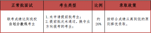 (1)面試資格:聯(lián)考成績達到我校自劃線的考生可根據(jù)情況申請正常批面試。正常批次面試名額占錄取總名額的約20%。