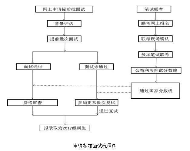 2017年MBA面試工作分為提前批次面試和正常批次復(fù)試,考生如通過(guò)提前批次面試,筆試成績(jī)達(dá)到2017年全國(guó)碩士研究生招生考試工商管理碩士考生進(jìn)入復(fù)試的初試成績(jī)基本要求(A類線),即可取得待錄取資格,不需要再參加正常批次復(fù)試。