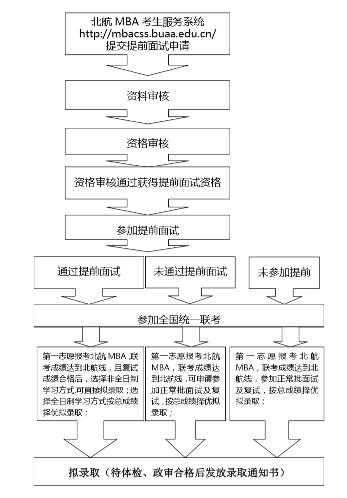 未參加提前批面試戒提前面試未通過(guò)且聯(lián)考成績(jī)達(dá)到北航復(fù)試線的考生另需參