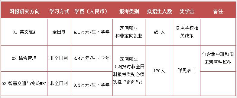 表一:2022年北京交通大學工商管理碩士招生人數(shù)及學費標準
