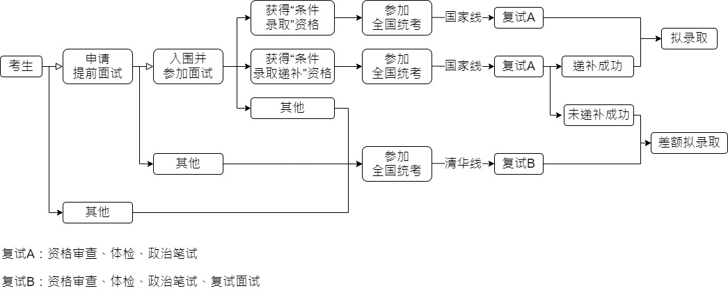 考生可通過(guò)參加提前面試走提前面試批,或直接參加聯(lián)考走普通批進(jìn)行報(bào)考,具體流程見下圖: