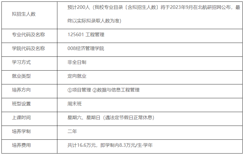 2. 2024年北航MEM招生政策最終以我校及我院招收2024年碩士研究生招生簡章及和復(fù)試錄取工作方案為準(zhǔn)。