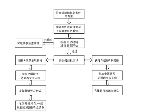 2、凡符合西安交通大學(xué)MBA提前批面試報名條件的考生,均可申請?zhí)崆芭嬖嚒?/p>