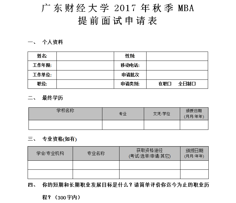 2017年廣東財經(jīng)大學(xué)MBA提前面試申請材料