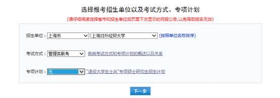 然后,填寫報考招生單位。請按以下信息填寫:
