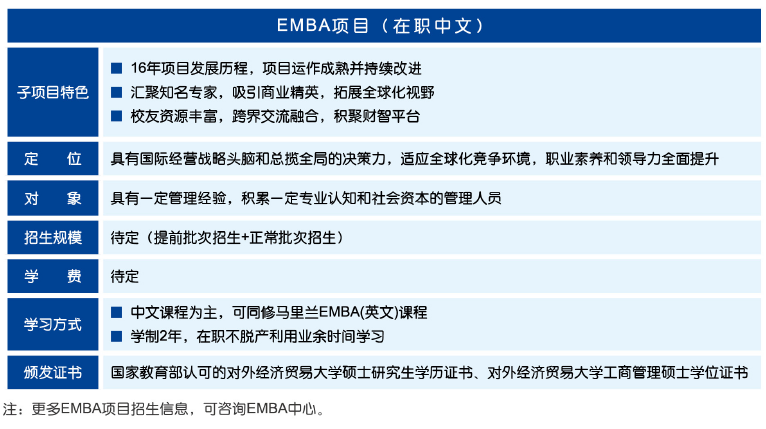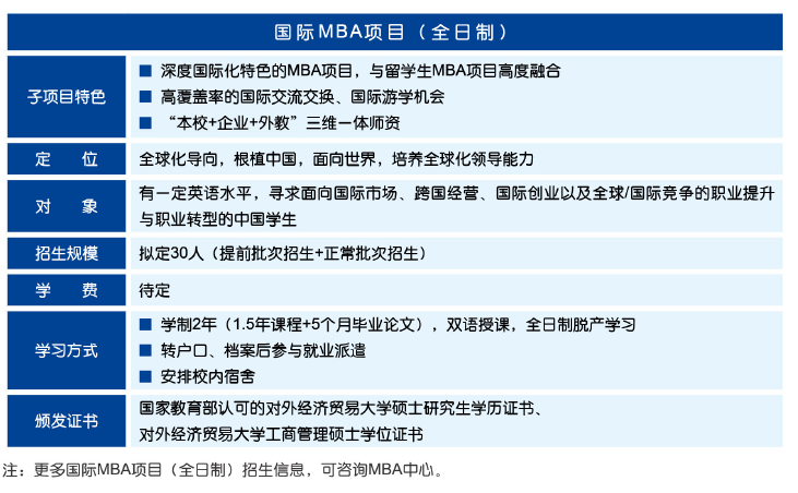 管理類碩士官方備考群,考生互動,擇校評估,真題討論 點(diǎn)擊加入備考群>>對外經(jīng)濟(jì)貿(mào)易大學(xué)工商管理碩士(MBA)2019年招生信息