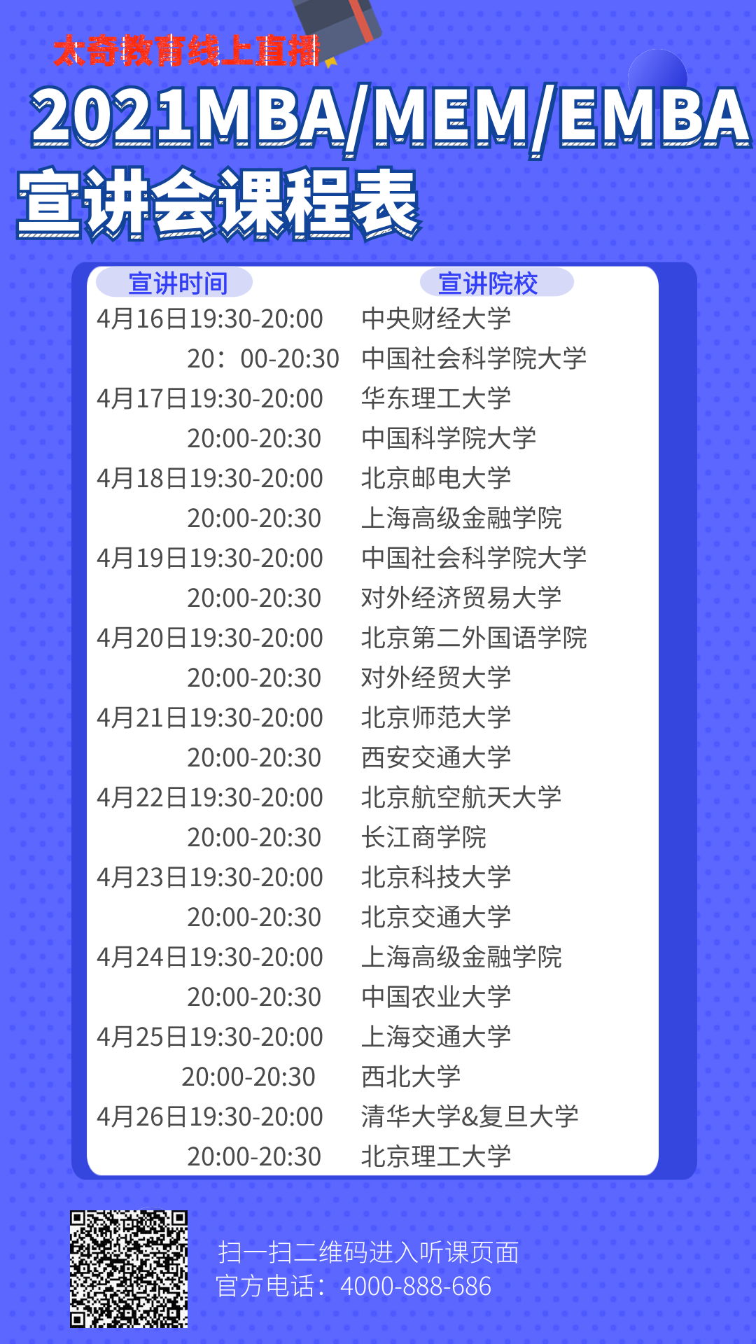 2021年全國MBA/MEM/EMBA院校宣講會(huì)課程表