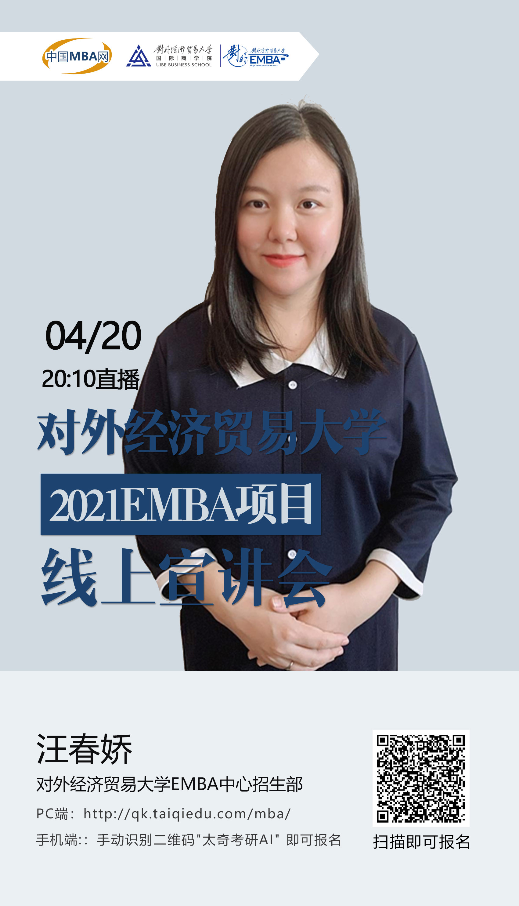 外經(jīng)濟(jì)貿(mào)易大學(xué)MBA/MEM/EMBA招生政策發(fā)布會(huì)(直播)
