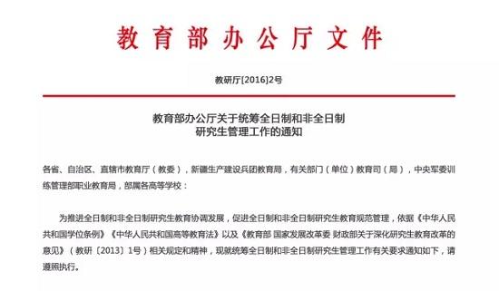 《通知》強調,全日制和非全日制研究生實行相同的考試招生政策和培養(yǎng)標準。