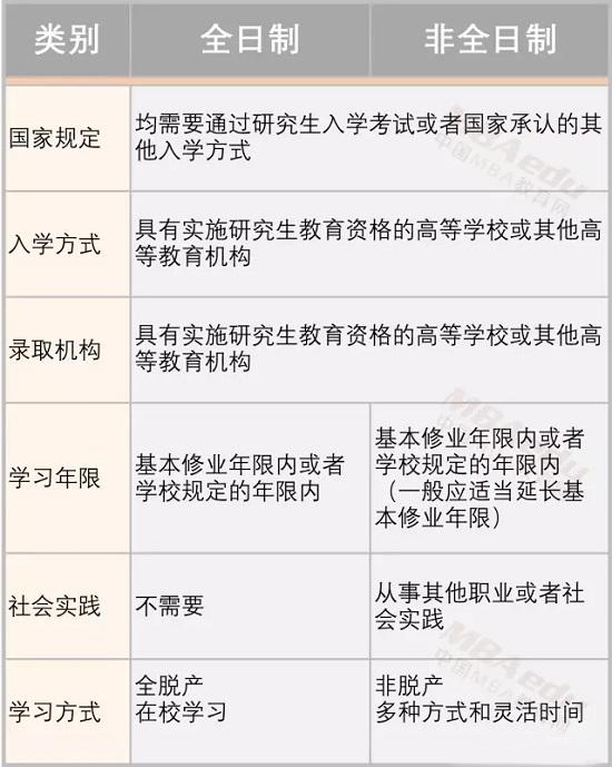 由圖表可以看出,《通知》對于全日制和非全日制研究生的區(qū)分主要在于是否在職和學習方式兩方面,并未涉及學歷學位和培養(yǎng)質量。今后MBA研究生將只在培養(yǎng)方式上區(qū)分為兩類:全日制MBA和非全日制MBA。