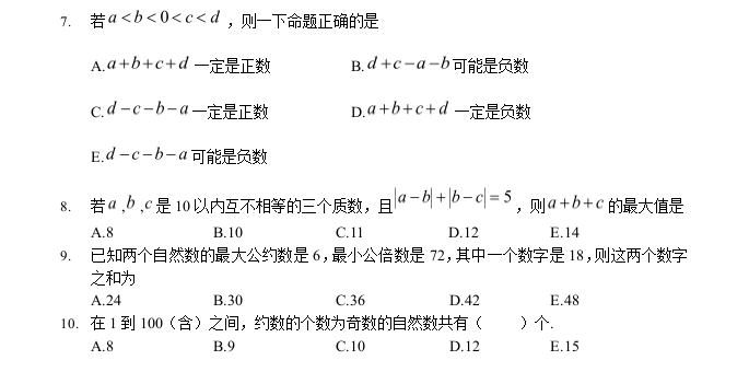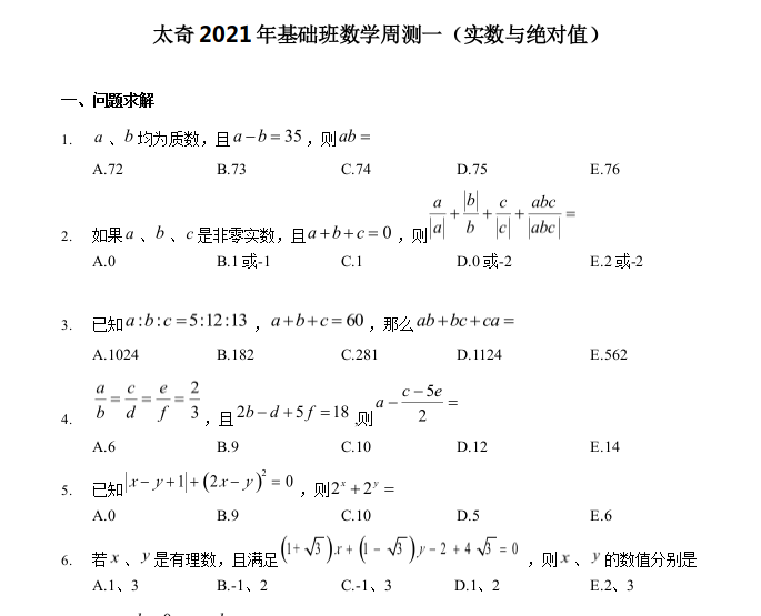 【數(shù)學(xué)】太奇MBA2021年基礎(chǔ)班數(shù)學(xué)周測一