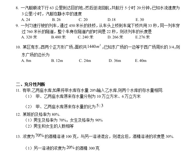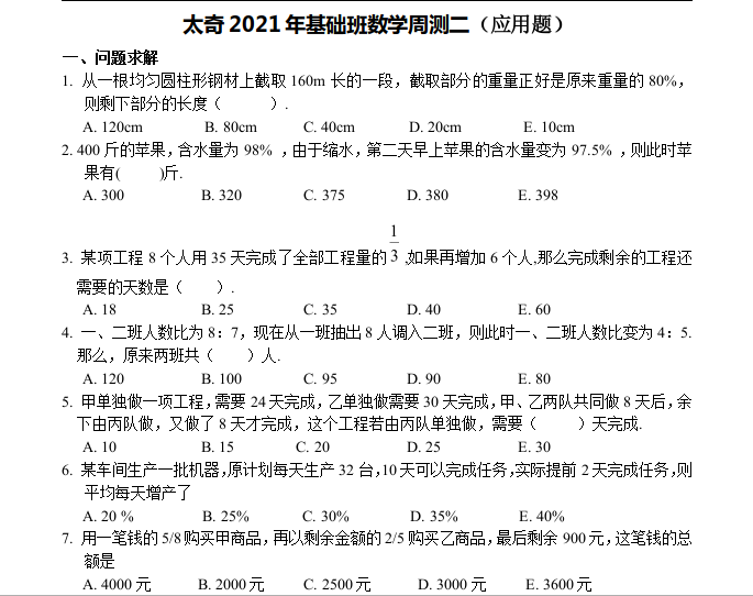 【數(shù)學(xué)】太奇MBA2021年基礎(chǔ)班數(shù)學(xué)周測(cè)二