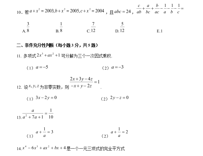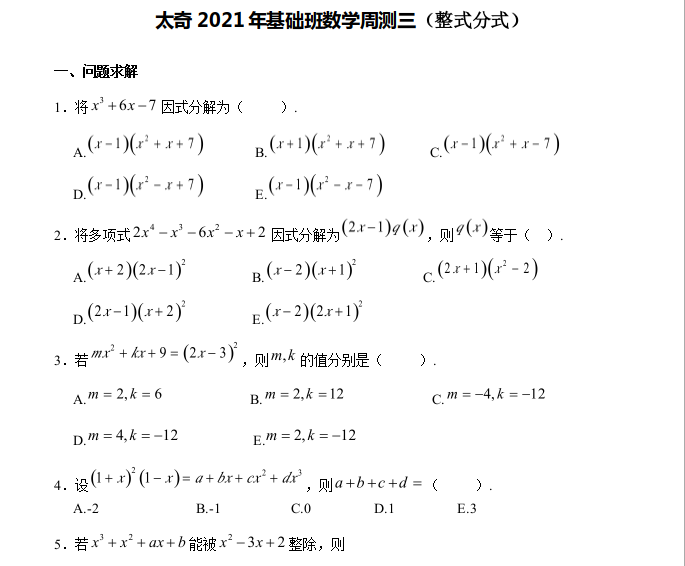 【數(shù)學(xué)】太奇MBA2021年基礎(chǔ)班數(shù)學(xué)周測(cè)二